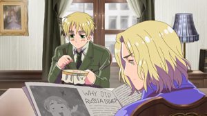 Russie est rentré. Lituanie et Lettonie, fébriles, l’accueillent, le premier tente de faire la conversation lorsqu’il demande des nouvelles d’Amérique. Estonie apparaît alors pour le mettre en garde, il change alors de sujet pour parler du repas. Mais Lettonie déclare soudain qu’il est rassuré de constater que Russie n’est pas allé se saouler. Lituanie et Estonie se crispent, mais Russie garde son sourire. Estonie trouve l’échappatoire parfaite : il va préparer du thé.