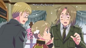 Russie demande où est passée sa veste, Lettonie accourt et explique qu’il l’a confiée à un musée étant donné qu ‘elle paraissait être d’une grande valeur historique. Russie rétorque tout sourire que c’est pourtant une veste qu’il porte tous les jours. Lettonie s’excuse platement et Lituanie a peur pour la vie de son camarade.