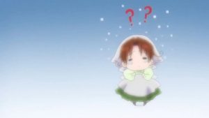Après le générique, Chibitalia nous chante d’une voix mal assurée son Marukaite Chikyuu.