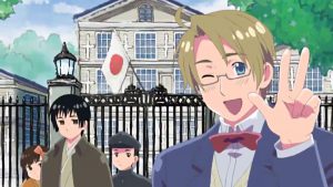 Post-générique, on retrouve Amérique qui vient d’arriver chez Japon pour discuter avec lui. A l’arrière plan, Japon et deux enfants sont perplexes.
