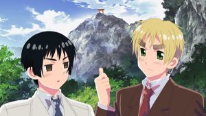 Angleterre vient d’arriver chez Japon et est impressionné face à la grandeur du Mont Fuji, mais l’asiatique lui apprend que ce n’est qu’une montagne ordinaire.