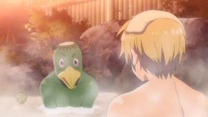 Angleterre, endormi dans un futon aux couleurs de son drapeau, se voit réveillé par les deux créatures en pleine nuit. Elles tenaient à le remercier pour son amabilité. Angleterre répond que c’était un plaisir partagé et il leur propose même de se retrouver pour un autre bain le lendemain. Le kappa et son compagnon auraient bien aimé mais ils sont en chemin pour retourner dans la montagne, raison pour laquelle il tenait à profiter d’un dernier bon bain dans cette demeure.
