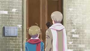 C’est au tour de Biélorussie d’être présentée. Décrite comme très belle, Russie relève aussi qu’apparemment, elle l’aime mais… On découvre Russie cloitrer chez lui, caché, tremblant d’effroi face aux affreux coups à répétition que Biélorussie frappe à la porte, enfonçant même ses ongles dans le bois.