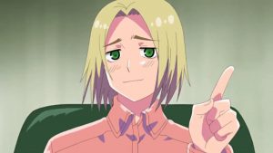 Angleterre tente de rattraper la situation et demande à Pologne s’il a néanmoins préparer quoique ce soit pour faire face. Pologne rétorque que ça fait des années qu’il se prépare et que justement, l’autre jour, il a fait l’acquisition d’une chose bien utile.. France et Angleterre n’en reviennent pas mais sont heureux de l’entendre. Pologne explique en effet que les cheveux à cette époque, ce n’est plus trop d’actualité. Non, quoi de mieux qu’un poney ! Il n’y a plus de mot pour décrire l’état décontenancé des deux Alliés. C’en est trop. Il n’y a plus rien à faire. Angleterre et France se lève et s’en vont disant adieu à Pologne. Ce dernier ne semble pas capter ce qui se passe.