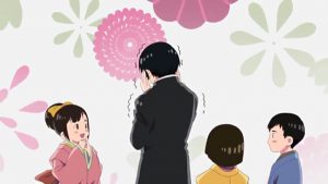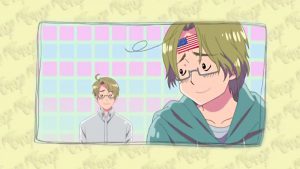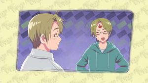Post-générique, on retrouve Amérique qui vient d’arriver chez Japon pour discuter avec lui. A l’arrière plan, Japon et deux enfants sont perplexes.