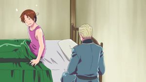 Allemagne est très en colère : Italie va être en retard pour son entraînement matinal ! Mais Italie dort encore profondément. Allemagne s’agenouille et lui propose alors de lui faire part d’une petite anecdote sur le judo qu’il avait appris à son retour de chez Japon. Aussitôt, Italie se redresse, parfaitement réveillé.