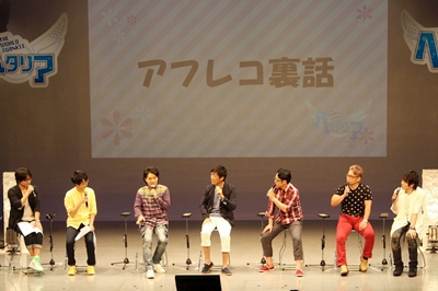 Le thème « Festivita » comprenait la mise en valeur de la splendeur des pays qu’ils interprètent. Ce sont cinq personnes calmes et posées, car « nous les Nordiques, nous sommes beaux », mais quand ils ont su que l’event n’allait pas finir en DVD, ils se sont complètement lâchés : « on va pouvoir balancer plein de trucs ! » Inoue-san et Kôsaka-san, à qui Mizushima-san leur a dit « bon courage parce qu’aujourd’hui ça va être dur à gérer », ont répondu qu’ils feraient de leur mieux.