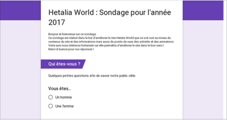 Bonsoir tout le monde ! Voici un (tout) petit article particulier afin de vous partager un petit sondage pour l’amélioration d’Hetalia World ! Si vous avez quelques minutes devant vous, pouvez-vous nous aider à améliorer le site en répondant à ce questionnaire ? Plus on aura de réponses, plus on […]